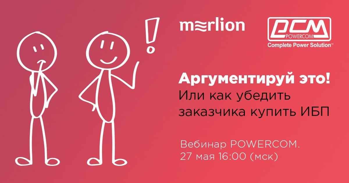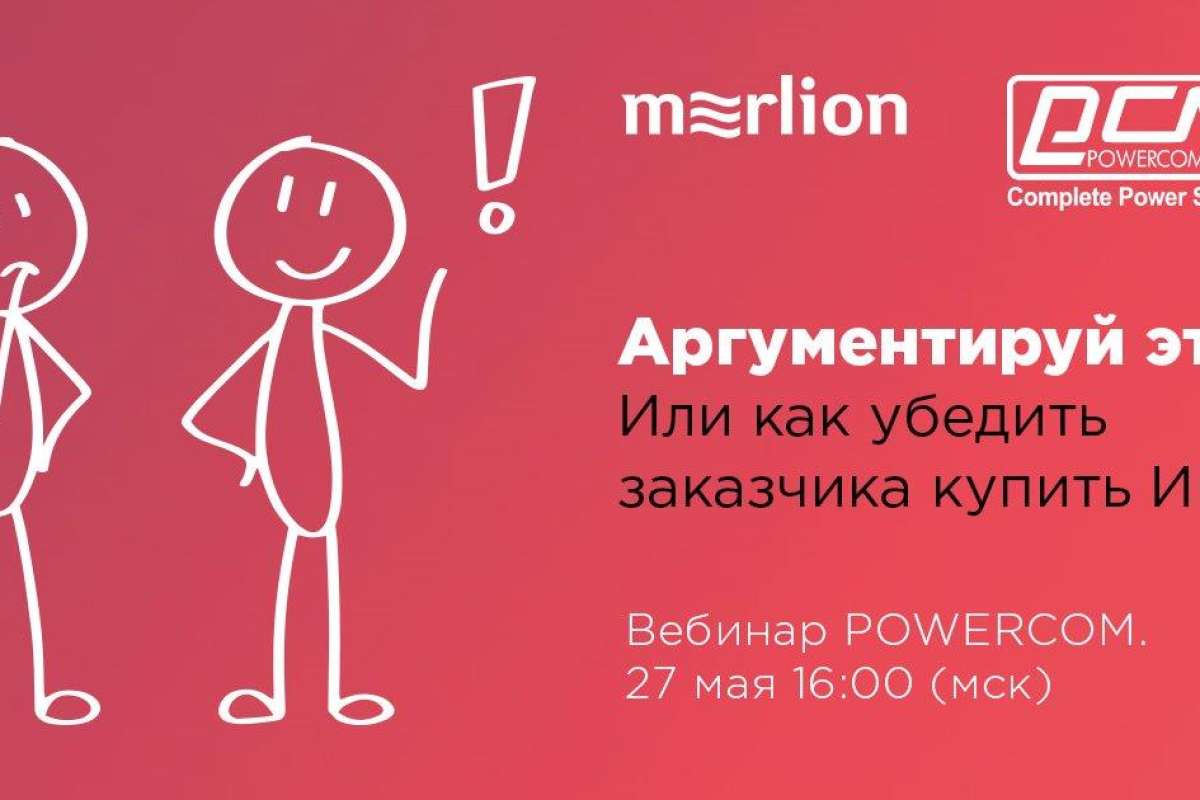 Merlion и Powercom приглашают вас на вебинар «Аргументируй это! Или как убедить заказчика купить ИБП», который состоится 27 мая в 16:00 (мск).