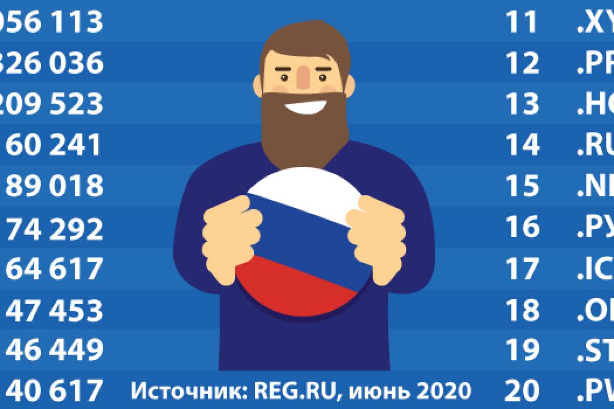 Топ-20 самых востребованных доменных зон среди клиентов REG.RU