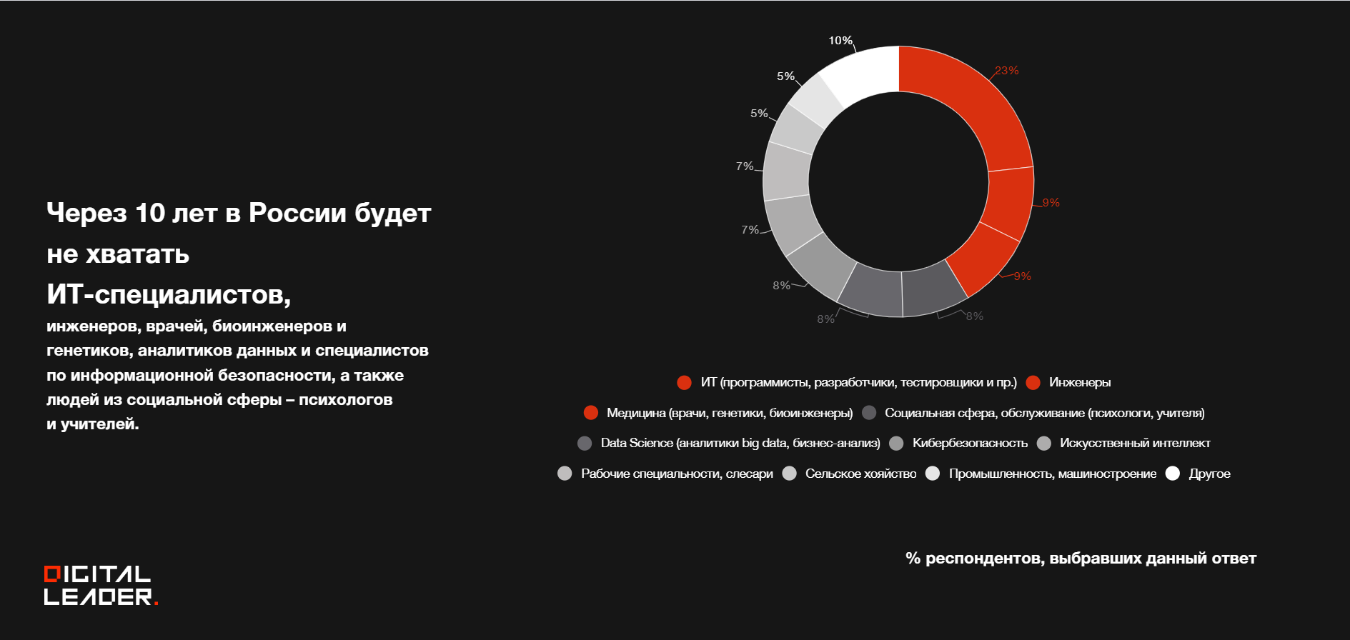 Наиболее востребованными окажутся ИТ-специалисты, инженеры, врачи, биоинженеры и генетики, аналитики данных, специалисты по информационной безопасности, а также психологи и учителя.