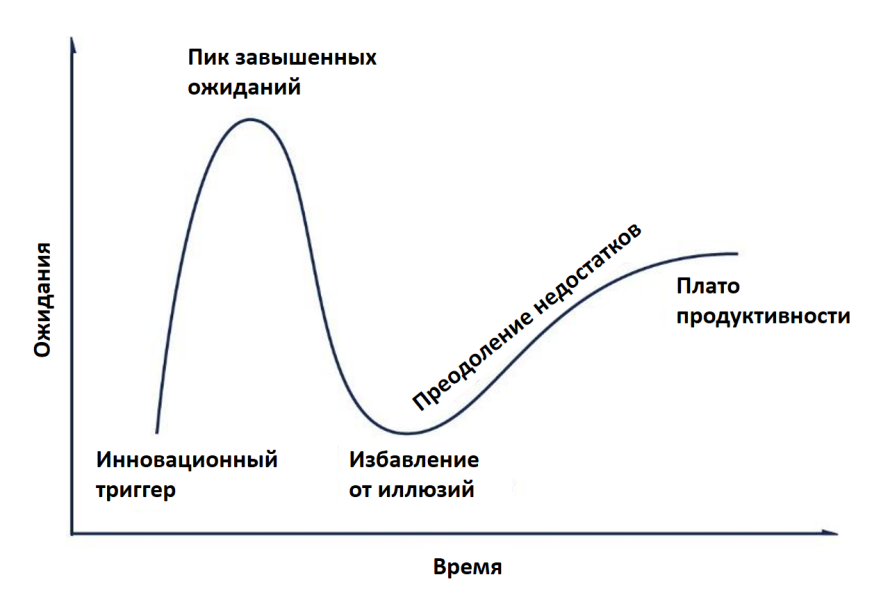 Что же происходит? Первое, на что следует обратить внимание: исследование показывает, что компании по-прежнему оптимистично оценивают возможность перехода на гибридные облака в будущем, хотя сейчас де-факто откладывают этот шаг. Выявленное «несоответствие» можно объяснить тем, что Gartner называет «избавлением от иллюзий», неизбежным этапом так называемого «Цикла хайпа».