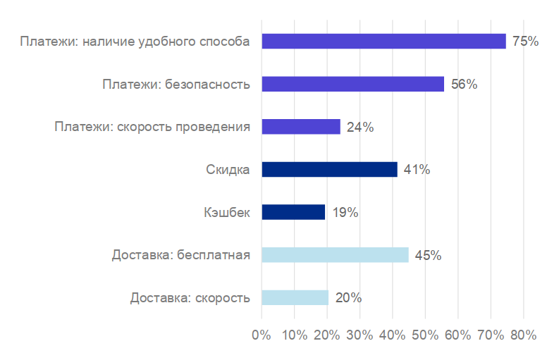 И это притом, что, как свидетельствует проведённое ранее исследование, почти треть посетителей Интернет-магазинов бросает свои корзины, не завершая процесс оформления заказа, именно из-за слишком долгого и неудобного процесса оплаты, а 50% — если продавец не поддерживает предпочитаемый ими способ оплаты. Правда, есть и позитивные выводы: итогом пандемии стал рост внимания всех участников рынка к деталям организации бизнеса, на которые они прежде не обращали внимания. Повышать эффективность сегодня стремятся всеми доступными средствами, и потому вопрос о потребительских предпочтениях в части способов оплаты онлайн-покупок также становится актуальным.
