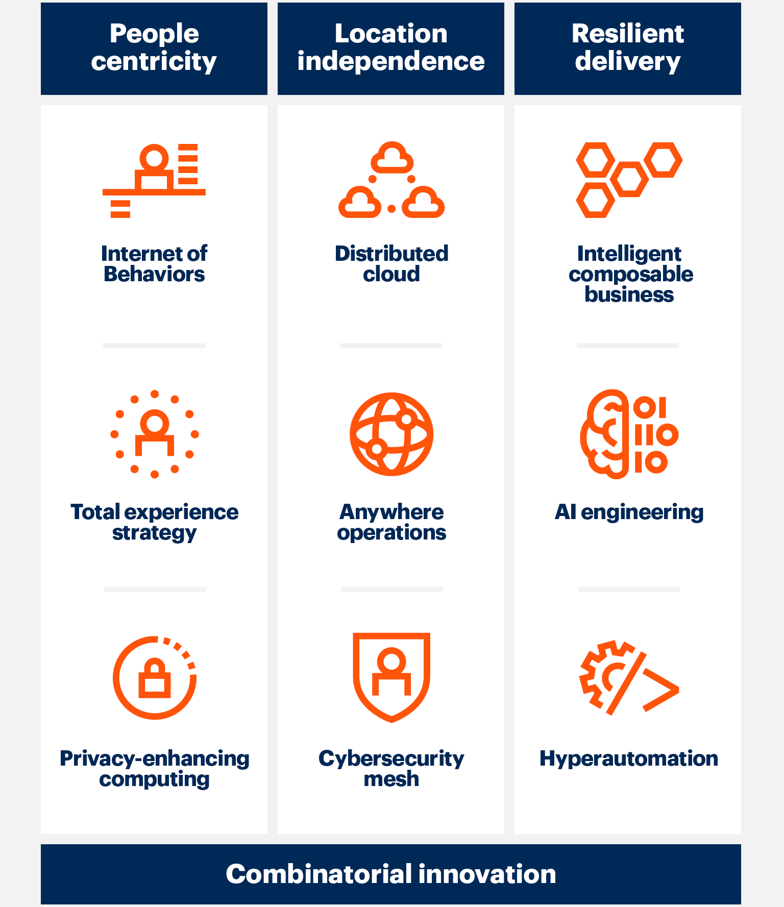 «Потребность в операционной устойчивости всех подразделений еще никогда не была столь острой, — пишет в пресс-релизе Брайан Берк (Brian Burke), вице-президент исследования Gartner. — ИТ-директора стремятся приспособиться к меняющимся условиям, чтобы помочь формировать будущее бизнеса. Это требует пластичности — чтобы организация могла строить и перестраивать свой бизнес динамически. Главные стратегические ИТ-тенденции, которые указывает Gartner, помогают обеспечить эту пластичность».