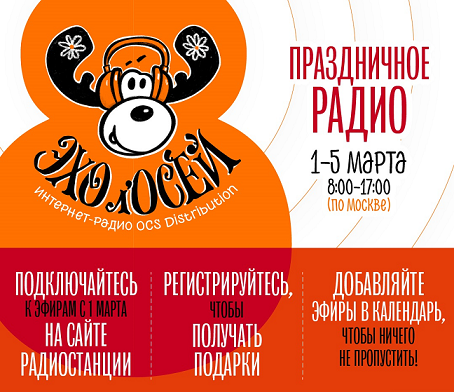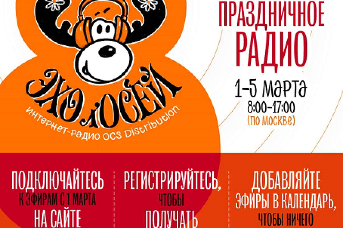 С 1 по 5 марта компания OCS Distribution запускает новый сезон праздничной интернет-радиостанции «Эхо л`ОСЕЙ». Каждый день с 8:00 до 17:00 (по МСК) команда ди-джеев из OCS будет работать над созданием всеобщей праздничной атмосферы и отличного настроения!