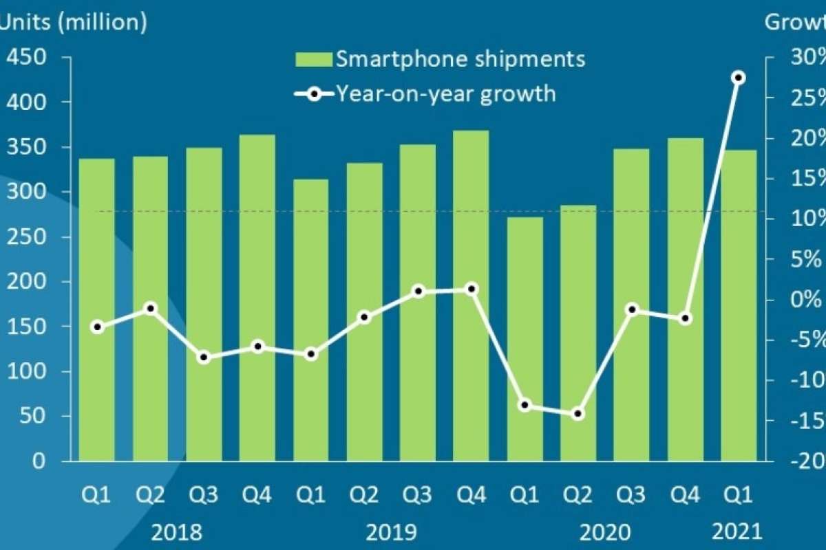 Всего за первые три месяца текущего года поставки смартфонов в канал в глобальном масштабе достигли 347 млн единиц, заверяет Canalys, — и это на 27% превышает результат первого квартала
