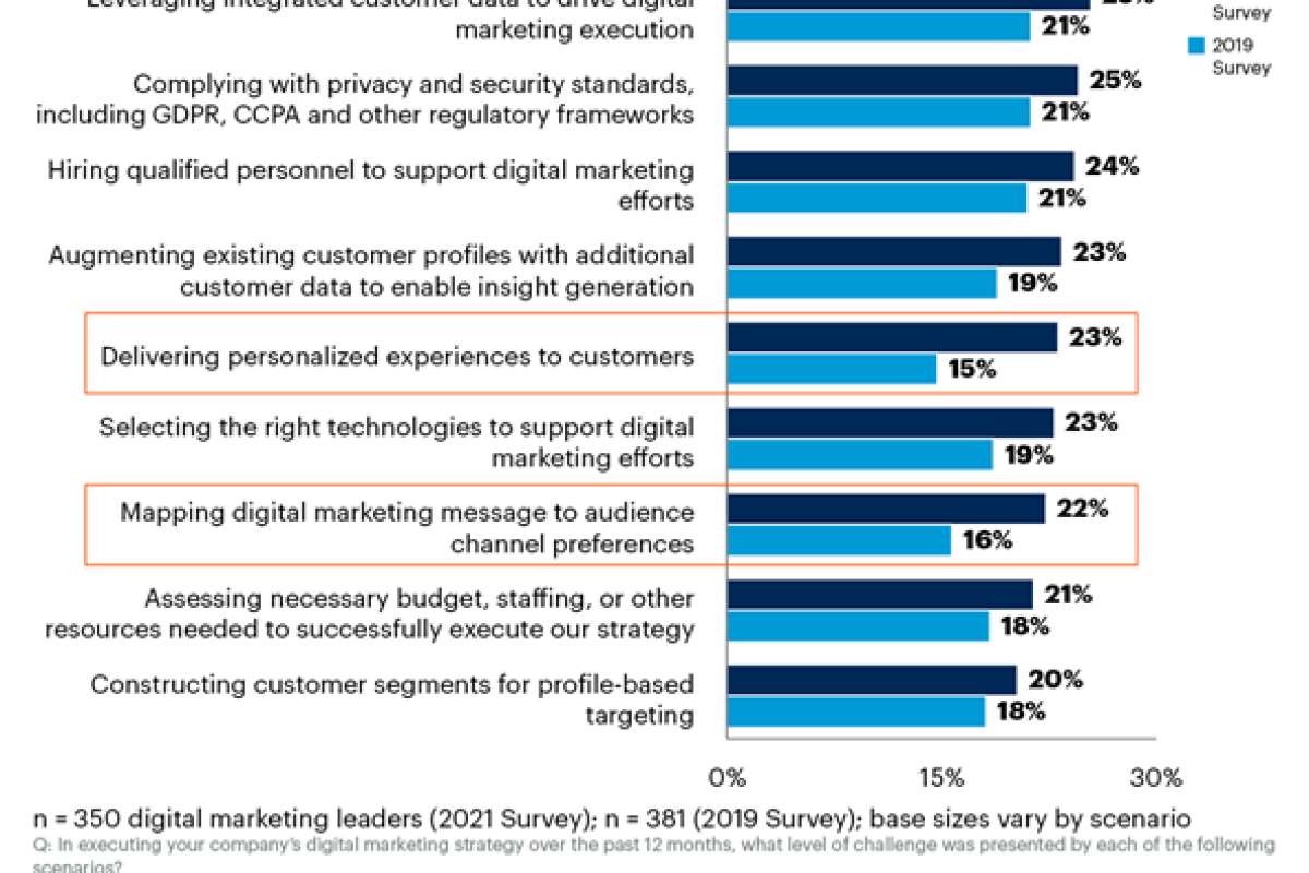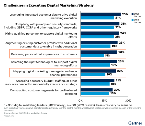 Почти две трети (63%) руководителей цифрового маркетинга по-прежнему испытывают трудности с предоставлением персонализированного клиентского опыта своим заказчикам, говорит Gartner. В опросе