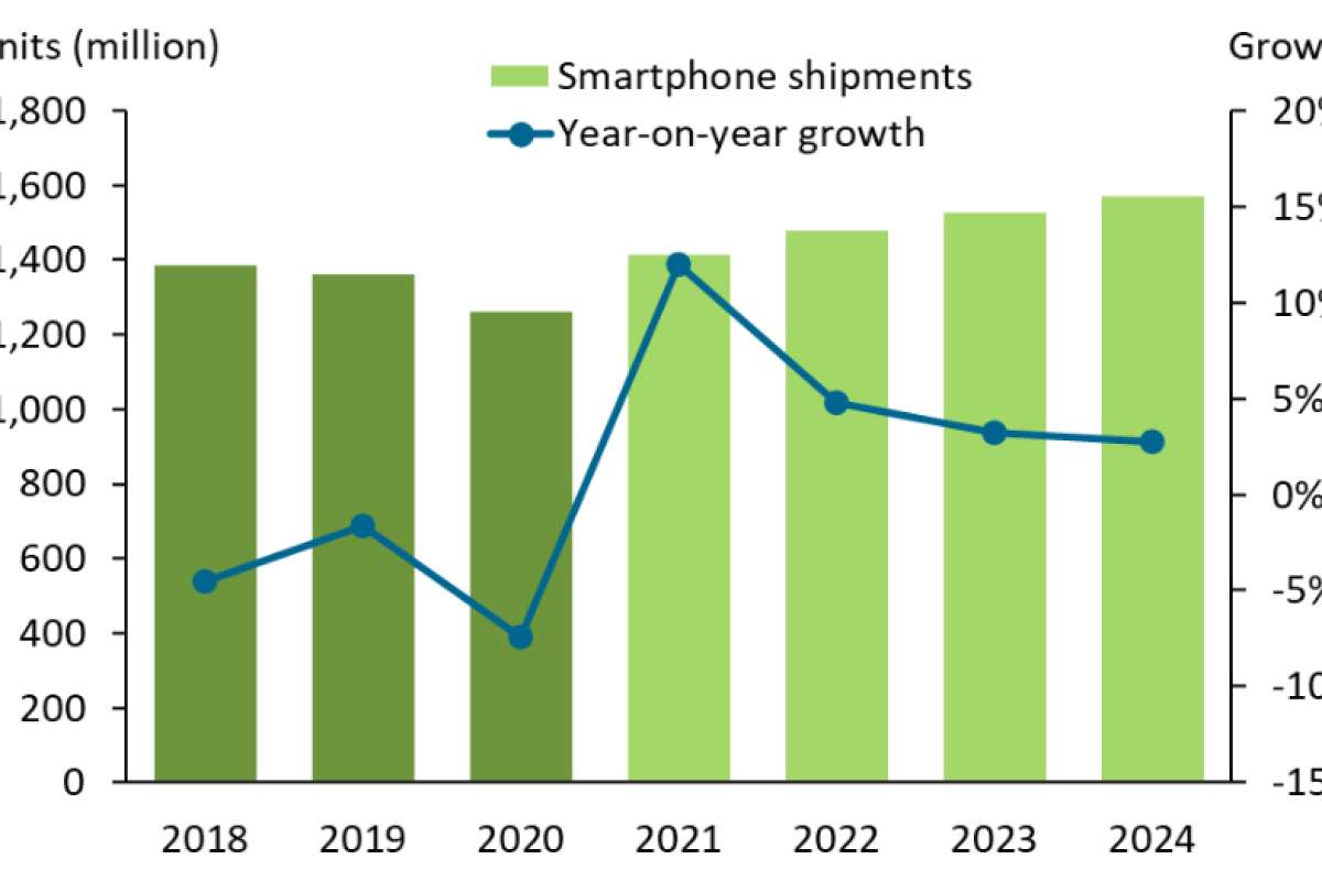 Согласно июньской оценке Digitimes Research, за 2021 г. в мире будет поставлено 1,32 млн единиц смартфонов, — на 6,4% больше, чем годом ранее. Около