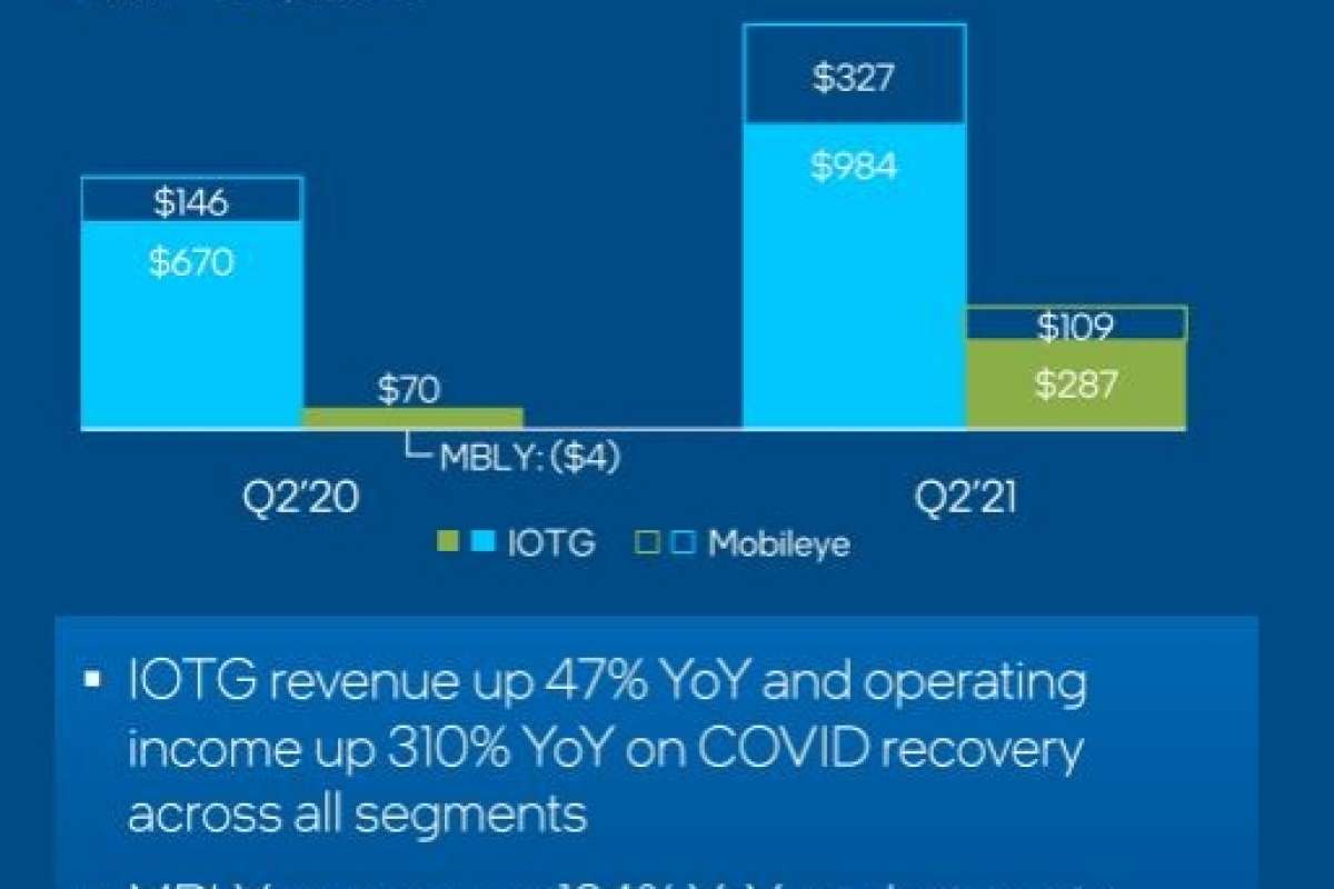 Для сравнения: в целом по итогам Q2/2021 общая выручка Intel cоставила 19,631 млрд долл. При этом выручка подразделения CCG (Client Computing Group) увеличилась с 8,229 млрд долл. (по итогам Q2/2020) до 9,397 млрд долл. (по итогам Q2/2021). Впрочем, необходимо отметить, что если продукция подразделений CCG и/или DCG (Data Center Group) используется в IoT-проектах, реализуемых партнерами Intel, то стоимость этой продукции учитывается в доходах IoT Group.