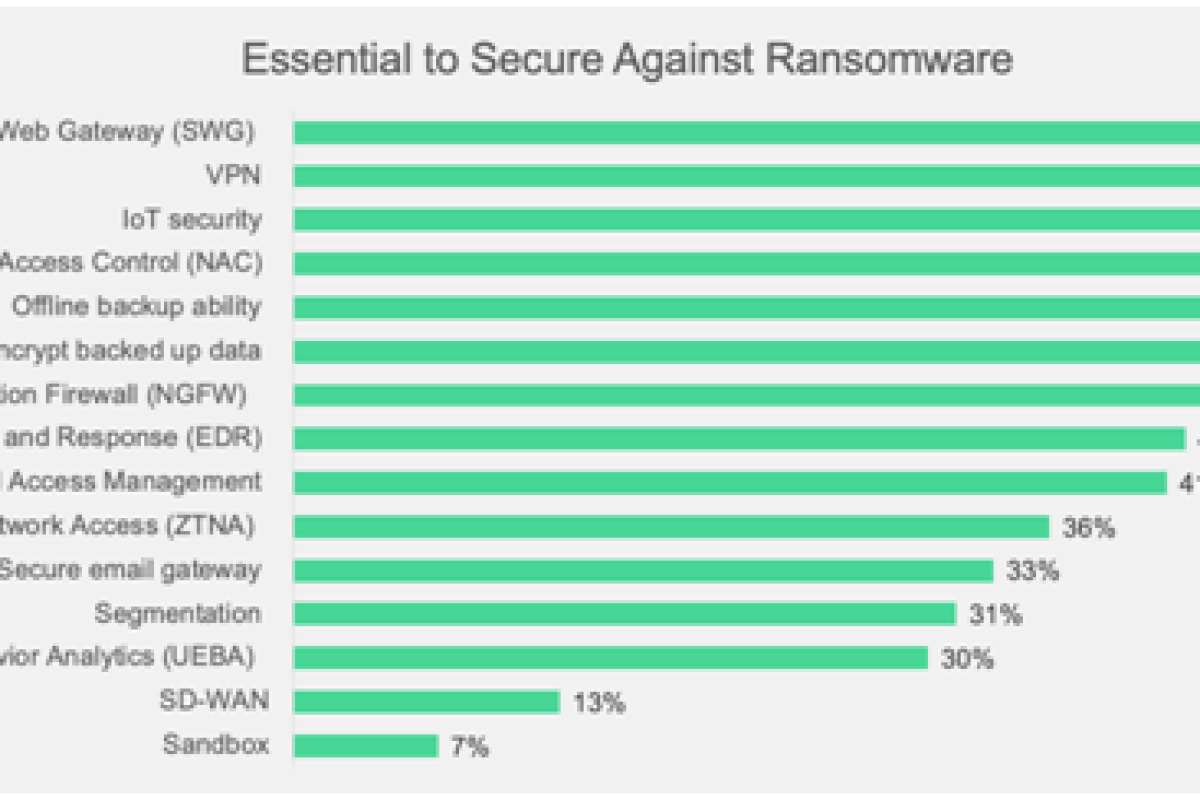 Если судить по технологиям, считающимся крайне важными, среди которых наиболее популярными являются Secure Web Gateway, VPN и Network Access Control, то организации больше всего беспокоятся об удаленных сотрудниках и устройствах, Хотя ZTNA — новая технология, ее следует рассматривать как замену традиционной технологии VPN. Однако наибольшее беспокойство вызвала низкая значимость сегментации (31%). Это критически важное технологическое решение, которое предотвращает боковое перемещение злоумышленников внутри сети для получения доступа к важным данным и интеллектуальной собственности.Аналогичным образом, UEBA и песочница играют критически важную роль в выявлении вторжений и новых штаммов вредоносных программ, но оба они находятся ниже в списке. Еще одним сюрпризом стало восприятие важности защищенности шлюза электронной почты на уровне 33%, учитывая, что фишинг, как сообщается, является распространенным методом проникновения злоумышленников.