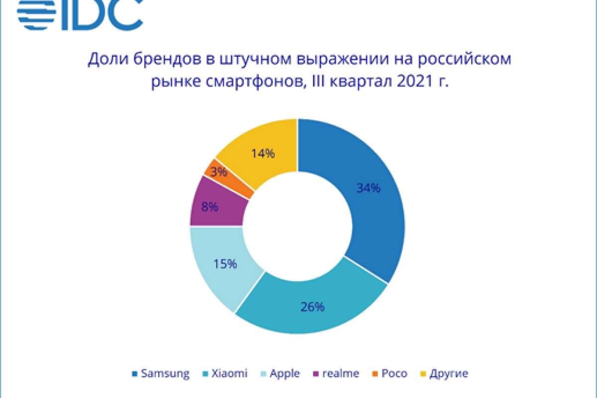 По данным International Data Corporation (IDC), российский рынок смартфонов показал негативную динамику в третьем квартале на фоне нехватки компонентов и сложностей, возникших в цепочках поставок. Согласно исследованию IDC Worldwide Quarterly Mobile Phone Tracker, поставки смартфонов составили 8,1 млн штук по сравнению с 9,4 млн в аналогичном периоде прошлого года.