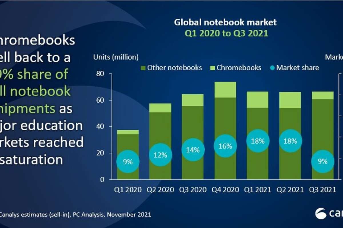 На деле же, как показывает практика, этого не произошло: хромбуки возвращаются в достаточно узкую нишу, в которой пребывали до коронакризиса. Рассчитанный год к году спад поставок хромбуков в количественном исчислении за III кв. 2021 г. почти достиг 37% по оценке Canalys и 30% — по данным IDC.
