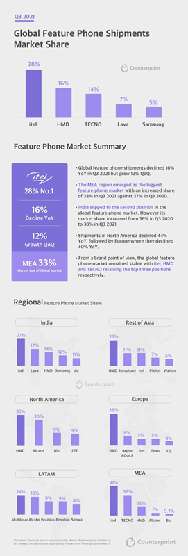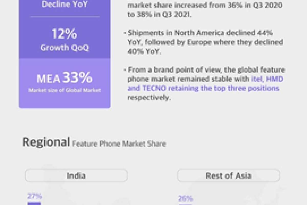 Регион MEA стал крупнейшим рынком мобильных телефонов с долей 38% в 3 квартале 2021 года по сравнению с 37% в прошлом году.