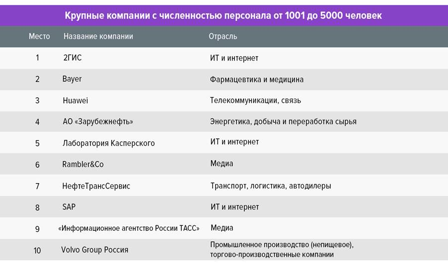 Крупные компании с численностью персонала от 1001 до 5000 человек