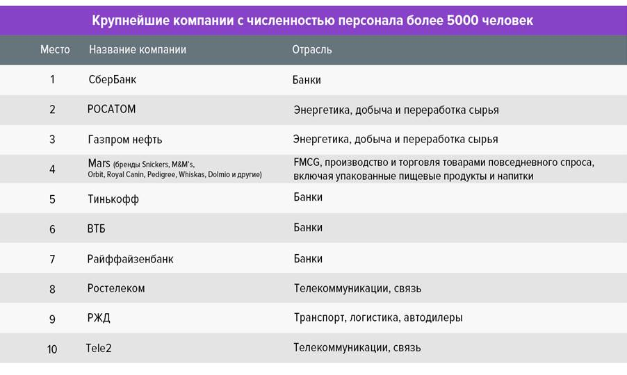В тройке лидеров на протяжении последних лет закрепились «СберБанк», «РОСАТОМ» и «Газпром нефть», перехватывая друг у друга пальму первенства. Если в прошлом году первую строчку занял «РОСАТОМ», то в