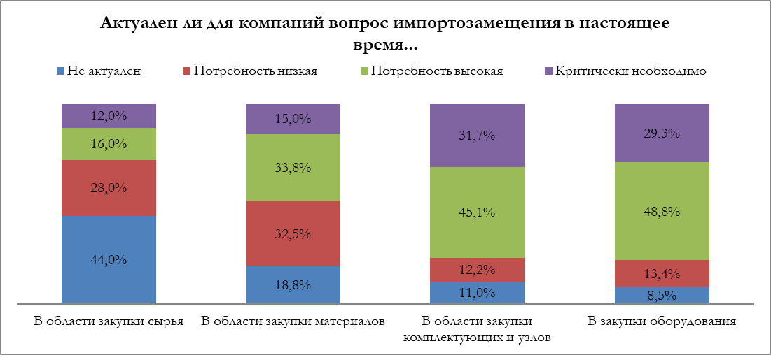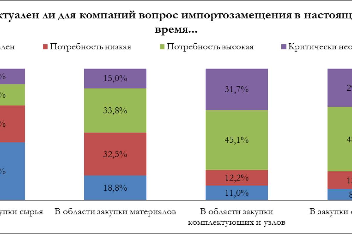 Если говорить о комплектующих и оборудовании, то здесь ситуация выглядит гораздо хуже: примерно треть участников опроса сообщила, что им критически необходимо замещение этой продукции (критические компоненты, необходимость замены поставщиков 1 уровня и т.д.), а чуть менее половины опрошенных остановились на ответе «потребность у компании высокая» (рис. 1).