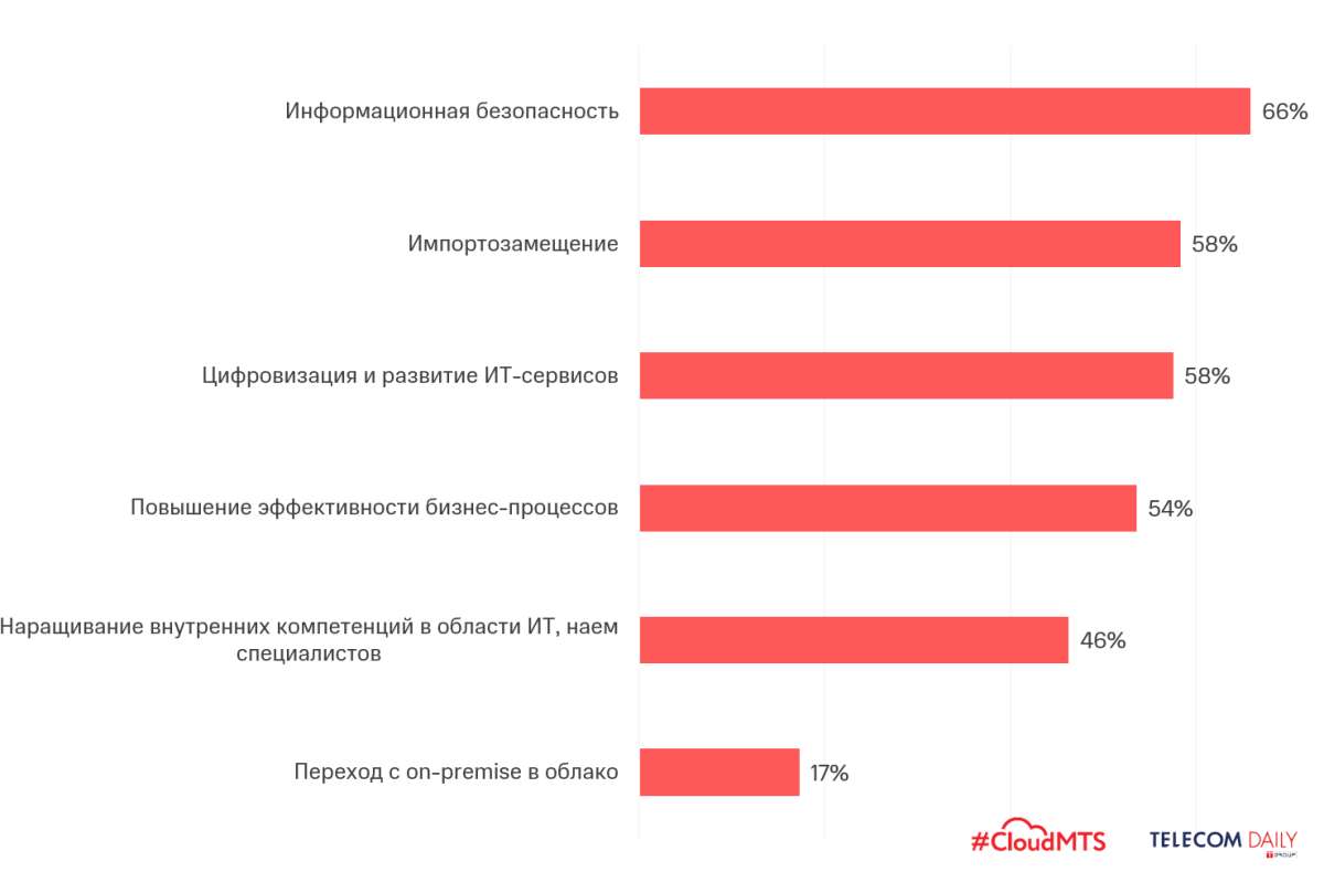 ПАО «МТС» подвела итоги исследования «Технологические вызовы-2022», проведенного вместе с TelecomDaily. В опросе участвовали руководители и владельцы более 600 организаций крупного и среднего бизнеса со штаб-квартирами в Москве и области. Результаты исследования показали, что информационная безопасность, импортозамещение и цифровизация сервисов станут ключевыми приоритетами в ИТ-стратегиях бизнеса на ближайший год. (Рис.1)