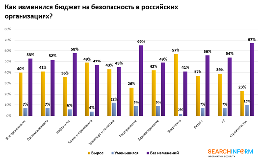 Чаще всего бюджет на безопасность увеличивали коммерческие организации — об этом сообщили в 41% опрошенных компаний. Немного отстают по этому показателю организации из государственного сектора (35%).