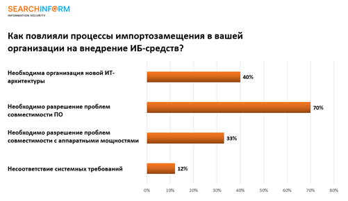 Организации, которые выделяли средства на импортозамещение зарубежного ПО и оборудования чаще всего сталкивались с необходимостью решать задачи, связанные с совместимостью ПО и организацией новой ИТ-инфраструктуры. (Рис. 3)