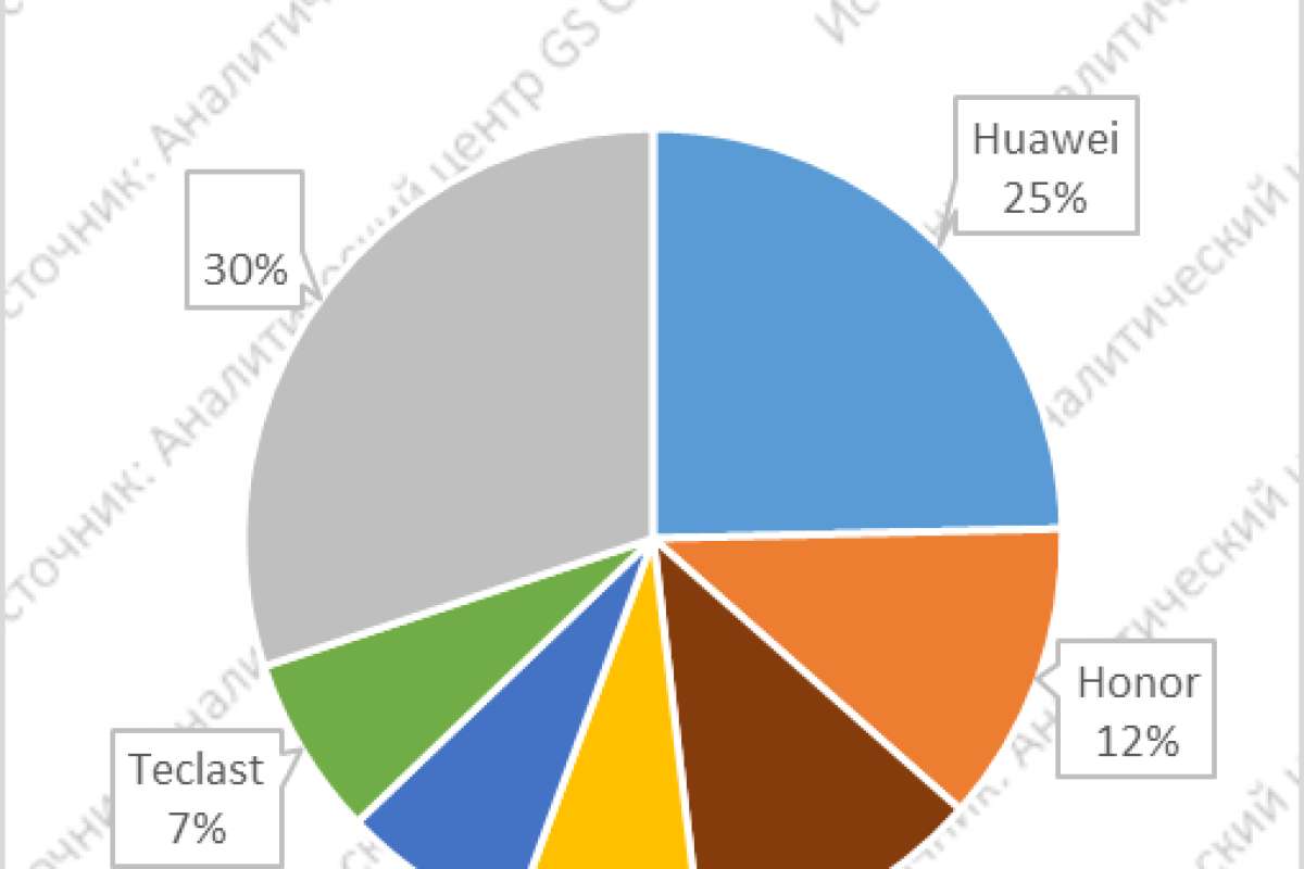 На данный момент можно выделить шесть компаний, лидирующих по продажам на российском рынке в 2023 году: Huawei, Hon-or, Apple, Dexp, Digma и Teclast. Эти произ-водители представляют 70% от общего ввоза в страну.