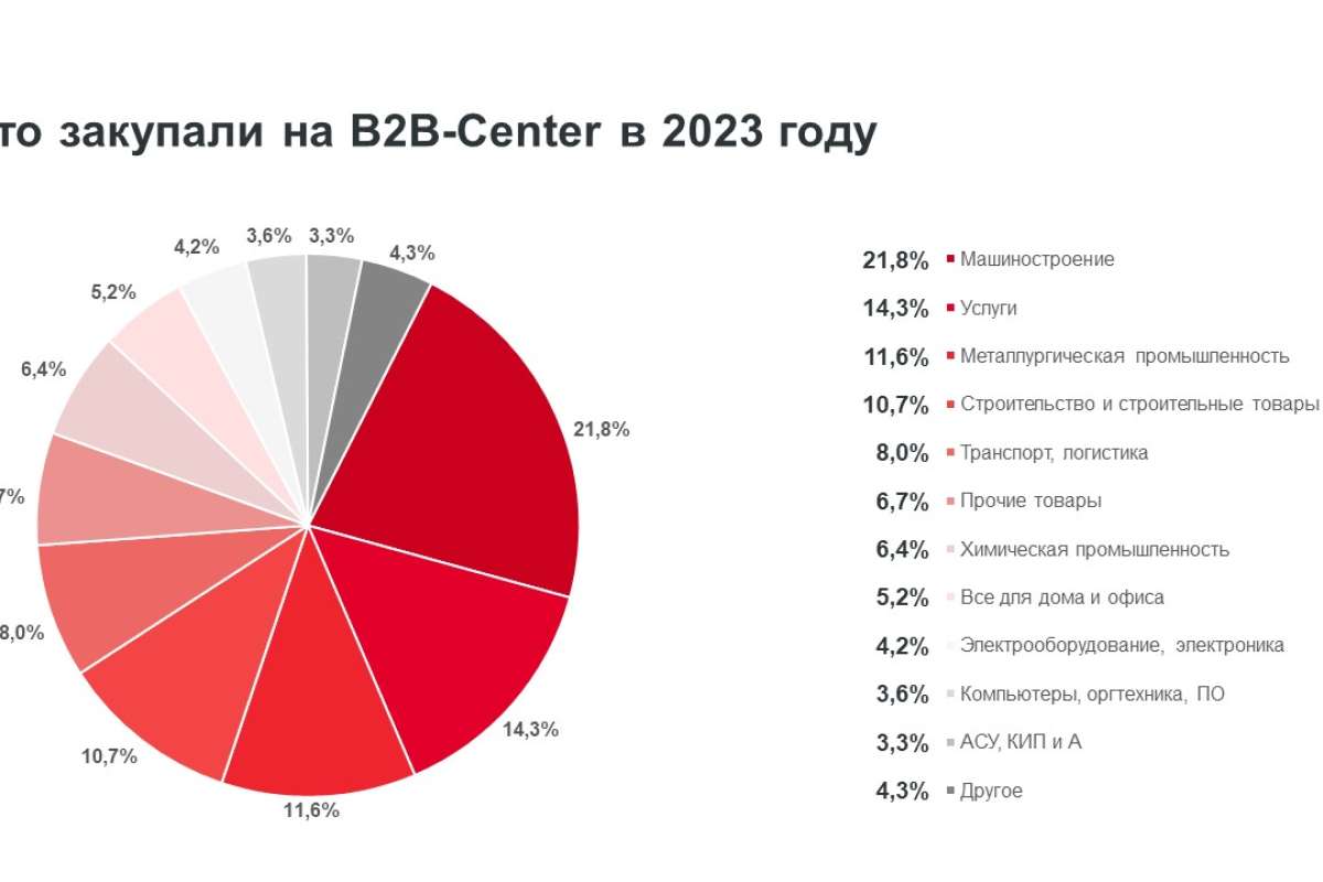 Самыми закупаемыми категориями стали продукция машиностроения и металлургии, стабильно востребованы различные виды b2b-услуг. В 2023 году на площадке вырос спрос на строительные товары и услуги, а также ИТ-продукцию. При этом произошло снижение запросов на транспортно-логистические услуги.
