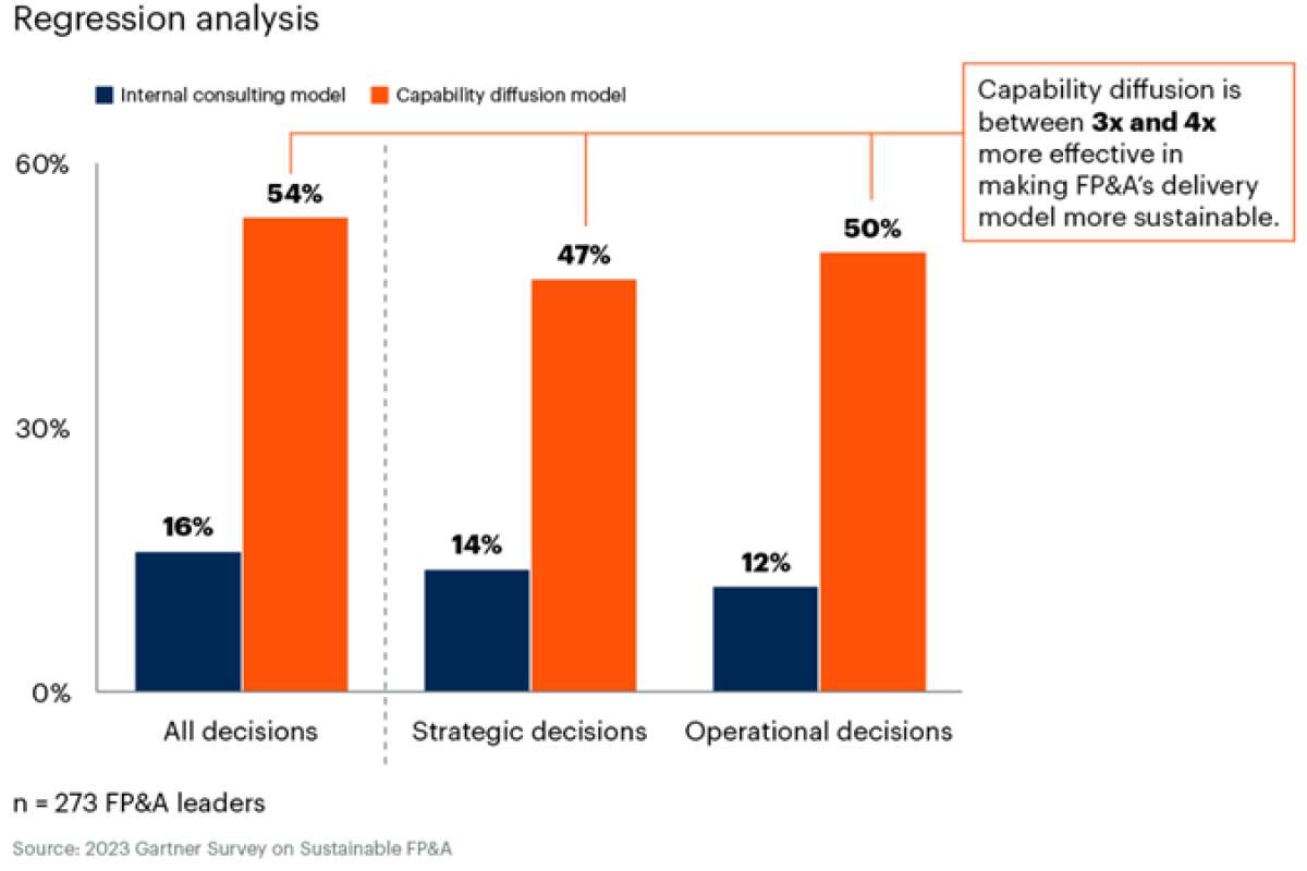 В опросе 273 руководителей групп FP&A и финансовых бизнес-партнеров и 102 руководителей высшего звена, принимающих решения, в организациях с доходом более 250 млн долл., проведенном в сентябре-октябре прошлого года, лишь 15% руководителей FP&A сообщили, что имеют устойчивую модель предоставления поддержки, посредством которой их команды могут обеспечить стабильный уровень поддержки принятия новых, сложных решений и планирования для всех ЛПРов без выгорания персонала FP&A.