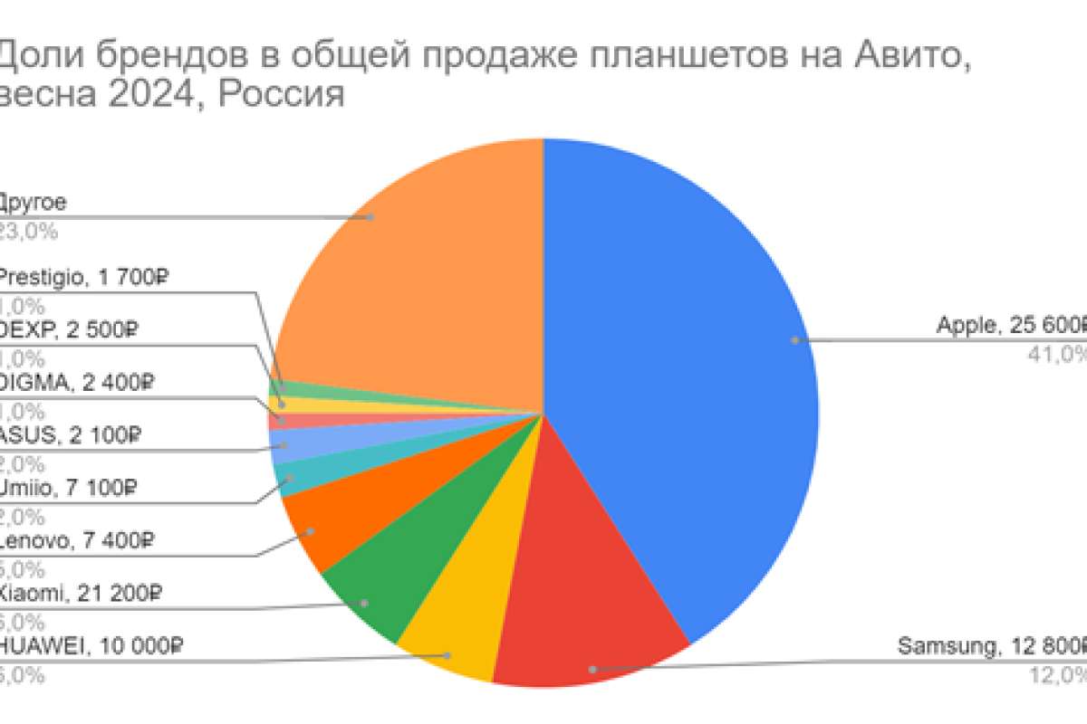 - Самым популярным брендом на платформе остается Apple, планшеты бренда возглавляют рейтинг устройств по доле продаж. Также в тройке лидеров Samsung и HUAWEI.