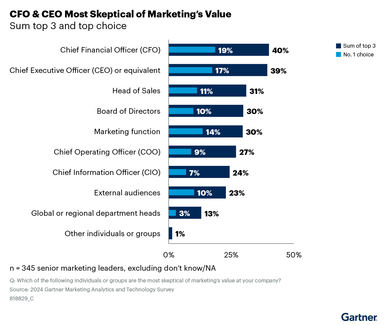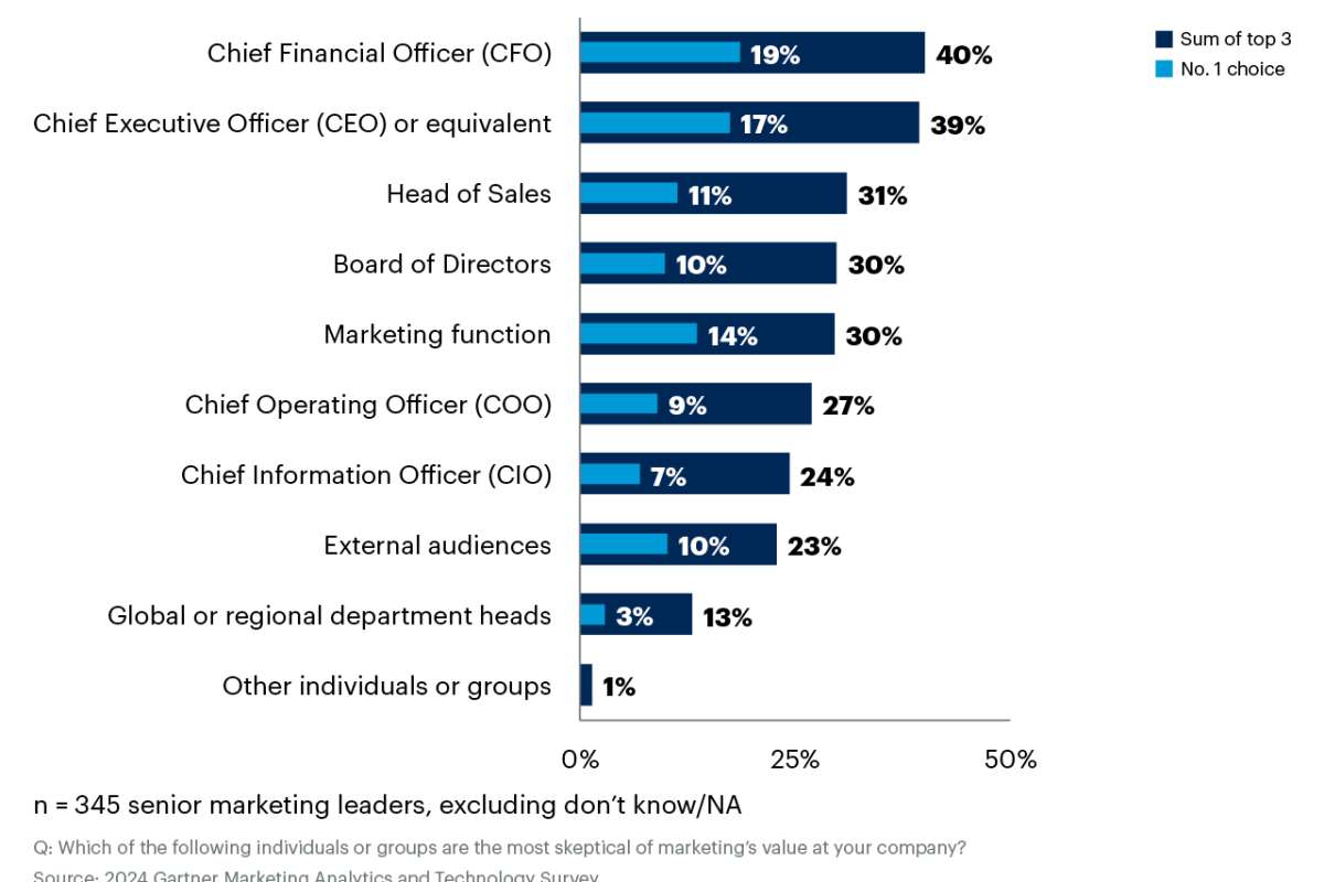 Как показало исследование Gartner, лишь 52% руководителей маркетинговых служб смогли разъяснить ценность маркетинга для организации, получив признание их вклада в достижение коммерческих целей.