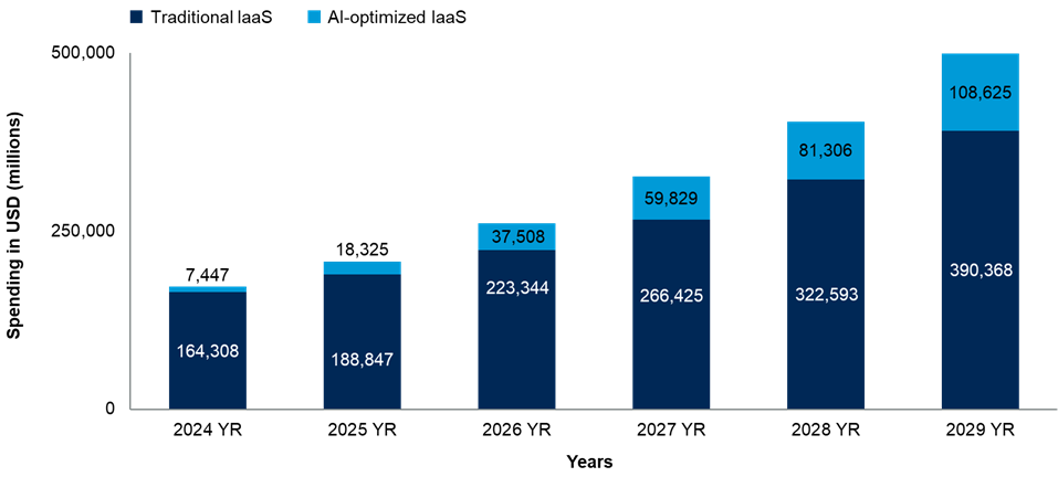 Оптимизированная для ИИ инфраструктура как услуга (IaaS) становится новым прорывным драйвером роста рынка ИИ-инфраструктуры. По данным Gartner, расходы конечных пользователей на эту категорию услуг вырастут на 146% к концу 2025 года.