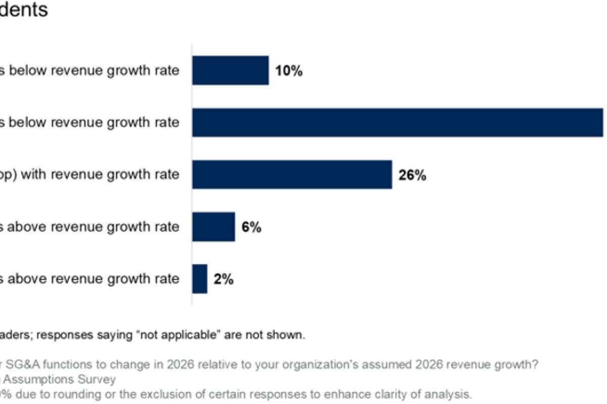 Согласно опросу Gartner 2026 Budget Assumptions, проведённому среди 142 финансовых директоров и старших финансовых руководителей в августе—сентябре 2025 года, 64% CFO планируют, что их административно-управленческие расходы (SG&A) будут расти медленнее, чем запланированные доходы в 2026 году.