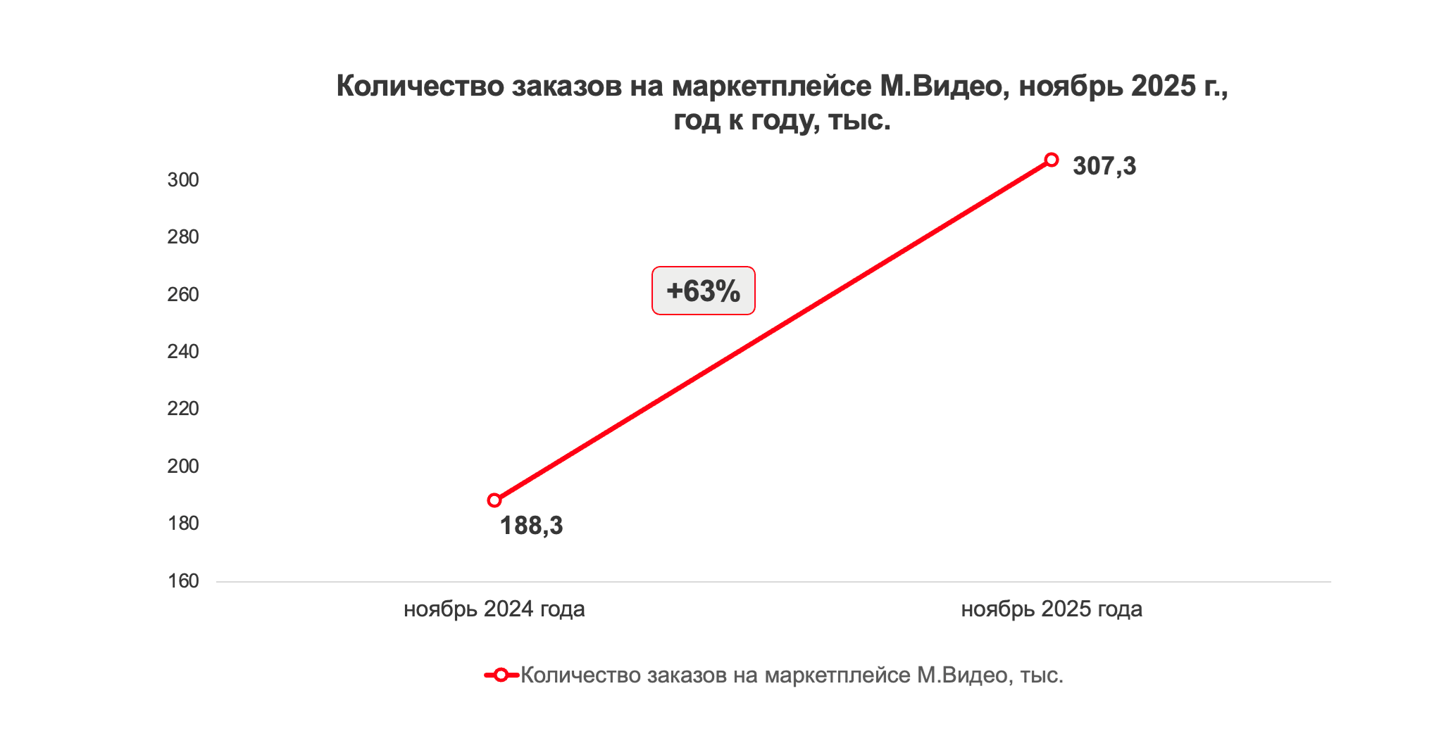 ПАО «М.видео» фиксирует продолжение устойчивого роста собственного маркетплейса. В декабре 2025 года оборот маркетплейса М.Видео увеличился на 37% по сравнению с ноябрем и на 83% год к году, достигнув 2,9 млрд рублей. Существенный вклад в динамику обеспечили предновогодний спрос, активное расширение ассортимента и высокий интерес покупателей к электронике, технике для дома и категориям активного образа жизни. В целом по итогам 2025 года оборот маркетплейса составил 14,1 млрд рублей, при этом финал года стал одним из самых сильных периодов: в декабре платформа продемонстрировала выраженный рост спроса в ключевых товарных категориях. В IV квартале 2025 года оборот маркетплейса М.Видео составил 6,6 млрд рублей, что более чем вдвое превышает результат III квартала 2025 года. По сравнению с аналогичным периодом прошлого года оборот в IV квартале вырос на 58%, подтвердив устойчивость модели и масштабируемость платформы в пиковый сезон.