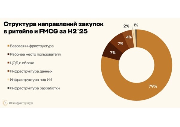 Во втором полугодии 2025 года ритейл и FMCG продемонстрировали умеренный рост инвестиций в ИТ-инфраструктуру, одновременно резко изменив модель потребления ресурсов. Ключевым трендом стало двукратное увеличение спроса на аренду вычислительных мощностей — сегмент коммерческих ЦОДов и публичных облаков показал наиболее заметную динамику на фоне общей стабилизации рынка.