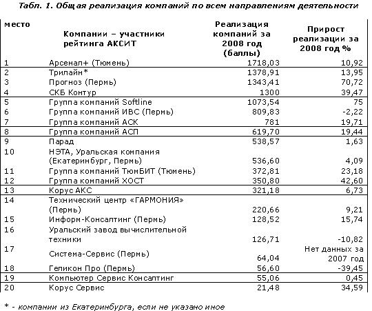 Конечно, ухудшение итоговых цифр можно было бы объяснить и разразившимся кризисом, но, как отмечают организаторы рейтинга, реализация компаний Урала в среднем увеличилась более чем на 18% по сравнению с 2007 г.