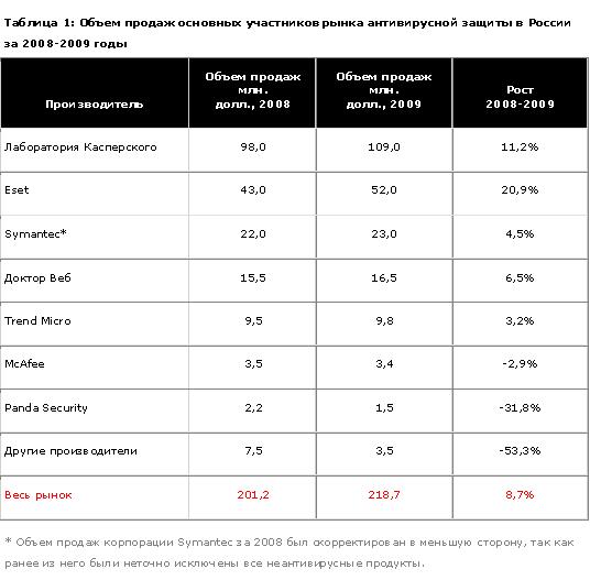 См. подробнее http://www.anti-malware.ru/russian_antivirus_market_2009_2010
