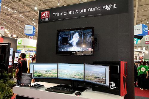 Естественно, что значительное место на выставке заняли компоненты для сборки и модернизации настольных ПК. Например, компания PowerColor представила графический ускоритель PowerColor на базе процессора AMD-ATI Radeon HD 5970, который позволяет подключить к ПК до 12 дисплеев.