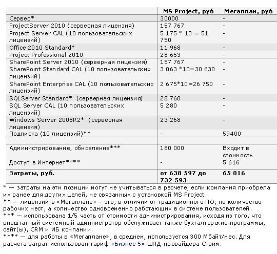 М.С.: Сравнительный пример расчета стоимости подписки на SaaS-сервис «Мегаплан» на 3 года из расчета 10 лицензий см. в таблице.