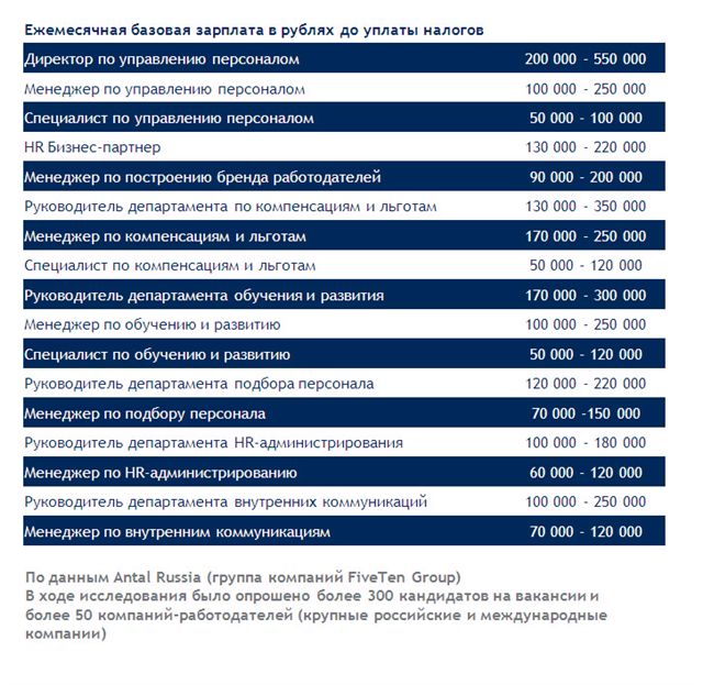 После кризиса многие крупные компании проводили реструктуризацию HR-департаментов и начали набирать профессионалов, которые отвечают за все вопросы управления персоналом в отдельном подразделении компании. Позиция HR-бизнес-партнера сейчас является одной из самых востребованных. Уровень заработной платы, предлагаемый кандидатам, колеблется от 130 до 220 тыс.рублей в месяц.