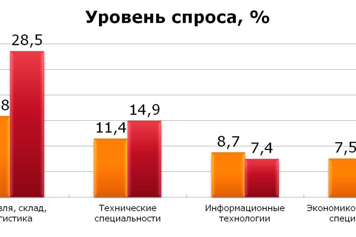 В этом году ситуация изменилась. На третье место вышли экономико-юридические специальности, а ИТ-специалисты были отодвинуты на четвертое место: они требовались лишь в одной из четырнадцати вакансий.