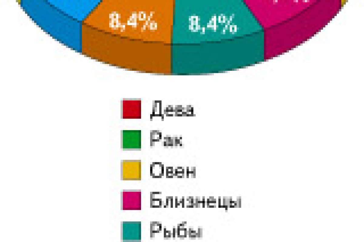 Самым редким знаком зодиака в ИТ-среде оказался Козерог (4,40%). Для людей, родившихся под этим знаком характерны размеренность и осторожность, что далеко не всегда сочетается с сегодняшним ИТ-рынком. Чаще всего Козероги выбирают для себя профессии, связанные с образованием и администрированием.