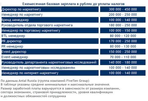 Наиболее высокие зарплаты маркетологам предлагают телекоммуникационные компании, компании отрасли производства и продажи потребительских товаров, товаров повседневного спроса.