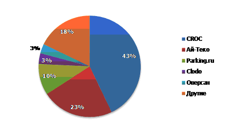 Услуги IaaS на российском рынке предоставляют 8 крупных игроков: Active, Clodo, Cloud One, КРОК, Parking.ru, Selectel, Ай-Теко и Оверсан. Лидером по выручке является компания КРОК, следом за ней идет компания Ай-Теко. Обе компании работают с крупным бизнесом. Замыкает тройку компания Parking.ru.