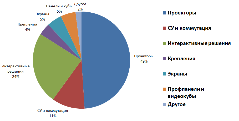 На долю дистрибуции приходится основная часть оборота DIGIS, AV-интеграция приносит примерно 10%. При этом, как отмечает генеральный директор DIGIS Борис Эшкинд, около половины доходов от дистрибуции приходится на продажи проекционного оборудования. Однако в прошлом году доля проекторов в структуре продаж несколько снизилась – с 55% (в 2010 г.) до 49%. Произошло это в основном за счет опережающего роста продаж некоторых других товарных групп. Так, доля направления «интерактивные системы» в 2011 г. выросла почти в три раза и достигла 24% в общем обороте DIGIS.