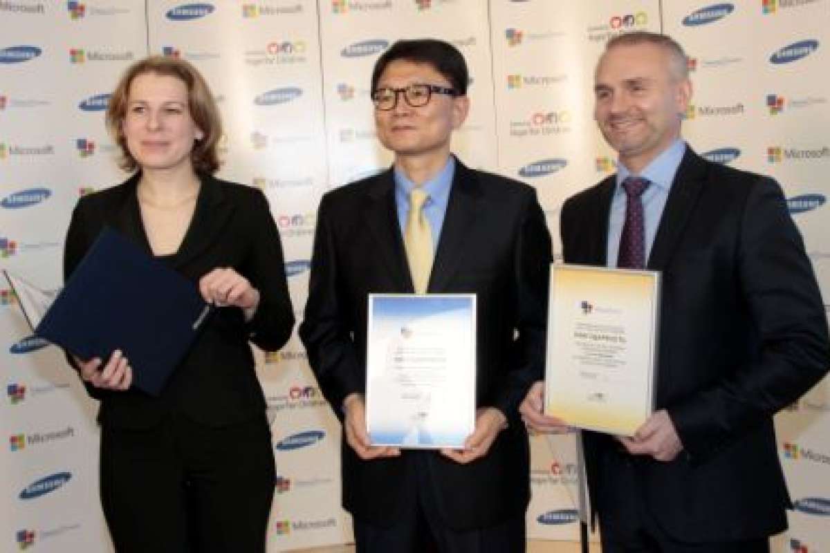 «Компания Samsung Electronics в рамках собственной глобальной социальной инициативы “Надежда — детям” (Hope for Children) помогает детям освоиться во взрослом мире и получить хорошее образование, так необходимое современному человеку. Вот поэтому мы откликнулись на предложение благотворительного фонда “ДетскиеДомики” и весной этого года присоединились к российской программе “Образование для ВСЕХ”, которая предоставляет дополнительные возможности для развития, образования и адаптации в современном мире детей с ограниченными возможностями. Участвуя в этой программе в качестве генерального партнера, Samsung Electronics обеспечивает ее финансовую и техническую поддержку. Мы считаем, что современные ИТ помогут детям с ограниченными возможностями не только освоить компьютер, но и получить дополнительное образование, расширить круг общения. Наша компания предоставляет ноутбуки, принтеры с расходными материалами и осуществляет подключение к Интернету», - подчеркнул Джан Санг Хо, президент штаб-квартиры Samsung по странам СНГ.