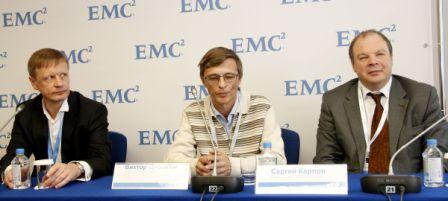 Сергей Карпов отдельно остановился на теме использования компаниями возможностей анализа больших данных. Он подчеркнул, что в основе систем анализа больших данных по-прежнему лежит ИТ-инфраструктура (серверы и СХД), некое ПО, реализующее стандартные математические методы обработки данных для выявления связей между ними, и собственно массивы разнородных данных, накапливаемые компанией: «Основой проблематикой для ЕМС остается формирование конгломерата данных, получаемых из разных источников, и сохранение их в едином хранилище для последующего анализа и получения бизнес-результатов для заказчика. С этой целью ЕМС разработала программно-аппаратную платформу Greenplum, которое обеспечивает ускоренную обработку и оптимизацию задач бизнес-аналитики».