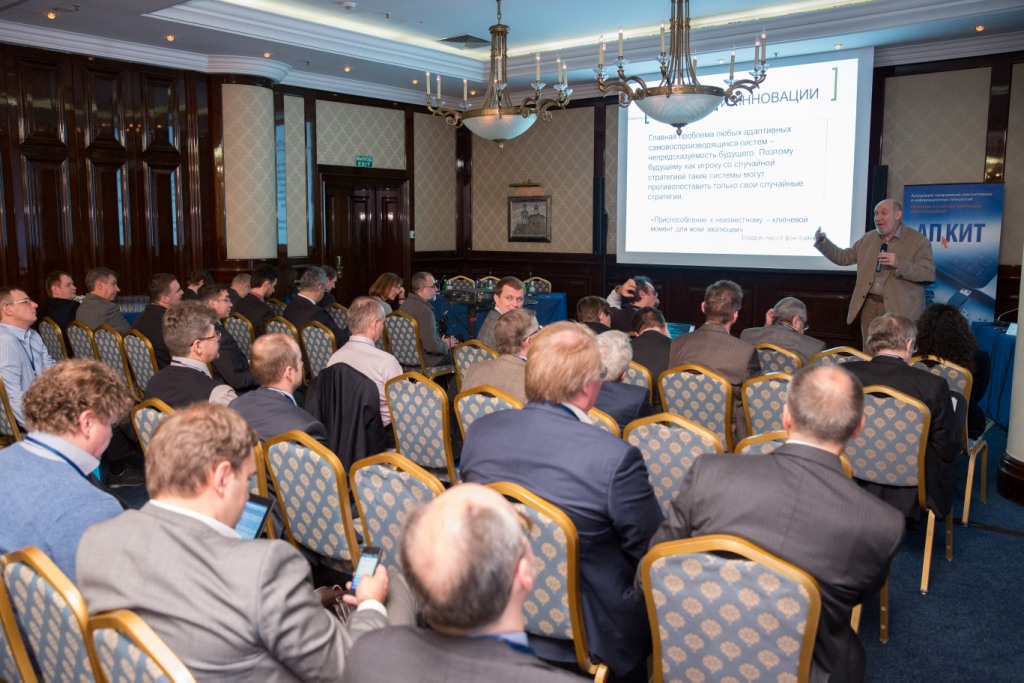 В выступлении Б.Бобровникова / Д.Васильева на тему: «ИТ-бизнес в эпоху стагнации экономики» было подчеркнуто, что прогноз МВФ роста ВВП России в 2013 году снижен до 1,5% с 2,5%, в 2014 году – до 3% с 3,3%. Рекордно низкий прирост оборота лидеров отечественного бизнеса (за все время существования рейтинга «Эксперт Топ 400»). Большие сервисные ИТ-компании закладывают в свои бюджеты возможный сценарий экономического спада, американские компании опираются на свой опыт борьбы со стагнацией. Даже в послекризисном 2009-м ИТ-компании выросли, в среднем на 7,8% (в частности, за счет увеличения государственных ИТ-бюджетов). Все большие ИТ-компании еще помнят уроки 2001-го и не делают необоснованных вложений в предполагаемый рост.