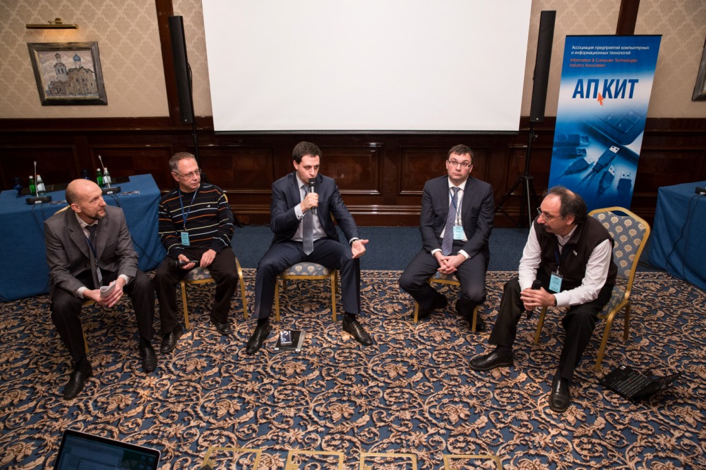 В дискуссия по непростой теме «ИТ-бизнес и государство – можно ли что-то изменить, и что такое цивилизованный лоббизм» участвовали Марк Шмулевич, Георгий Генс (ЛАНИТ), Александр Микоян (HP), Борис Нуралиев (1С). Модератор – Николай Комлев.