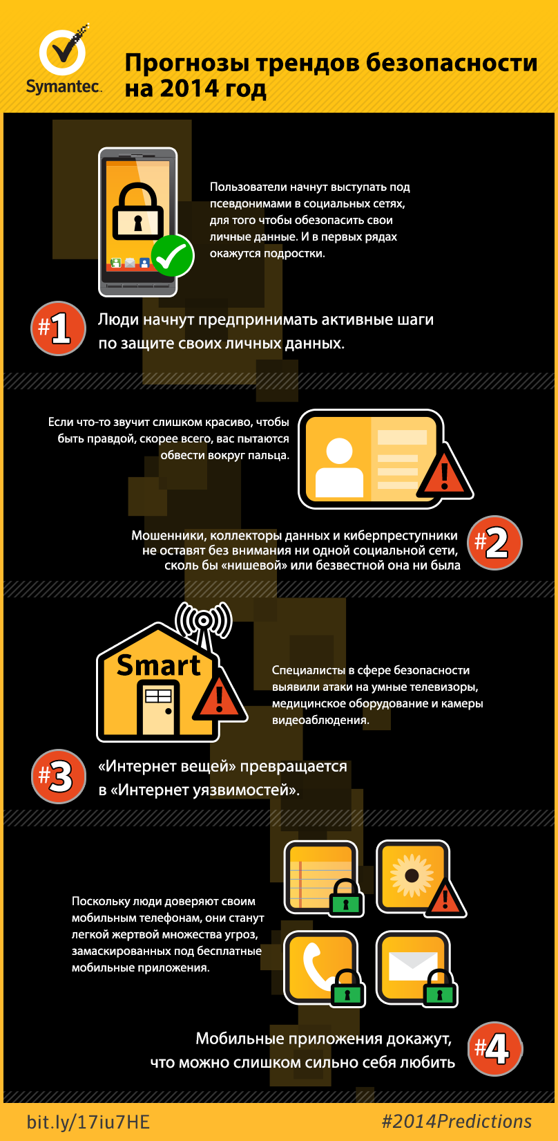 Корпорация Symantec представляет прогноз развития информационной безопасности в 2014 году.Ниже приводятся прогнозы, касающиеся тенденций и событий, свидетелями которых мы можем стать в следующем году: