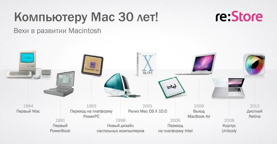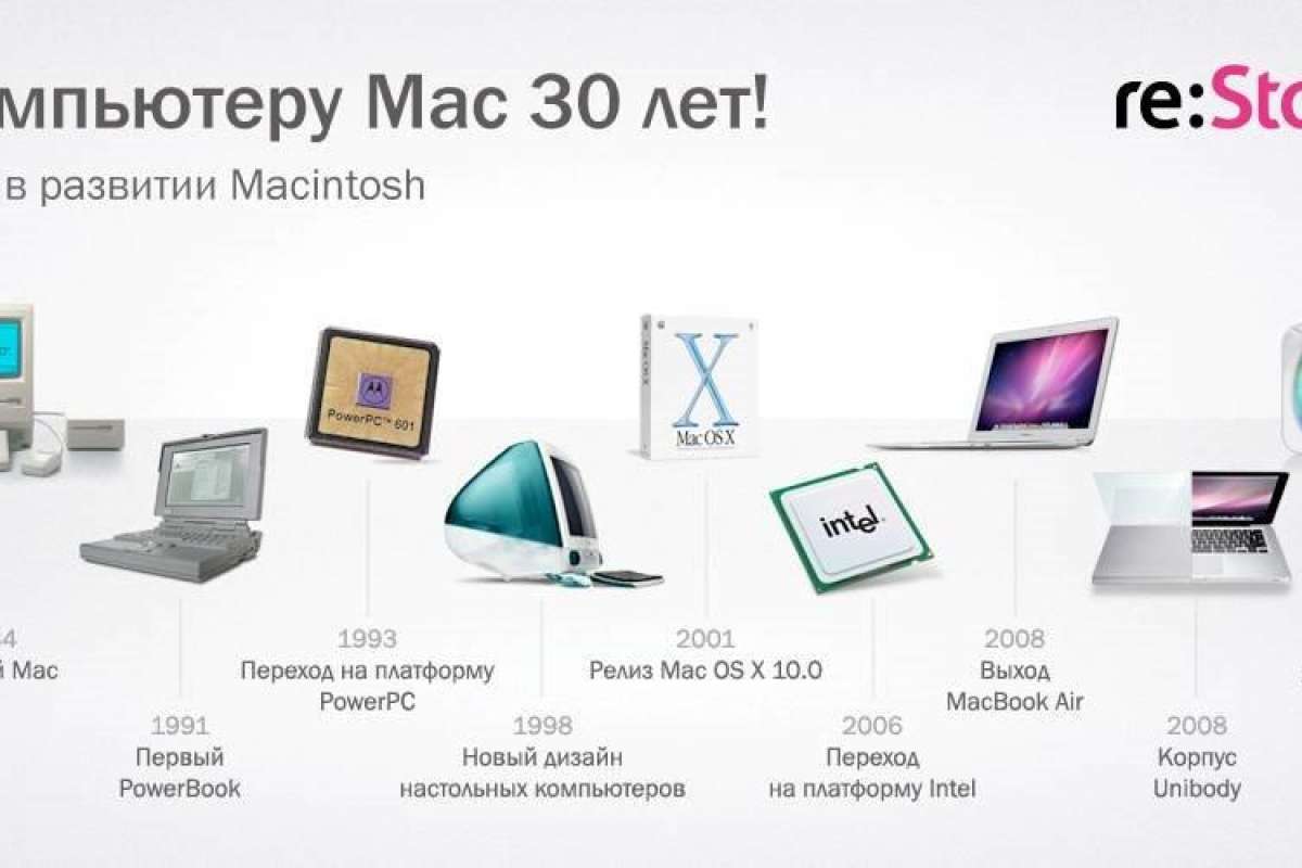 24 января 2014 года исполнятся 30 лет с даты презентации первого компьютера Macintosh Стивом Джобсом на мероприятии Apple. Сегодня самыми популярными у покупателей по оценке магазинов сети re:Store являются MacBook Air последнего поколения и MacBook Pro с экраном Retina. Инфографика напомнит вам об основных вехах в развитии Mac.Источник: Пресс-служба Inventive Retail Group