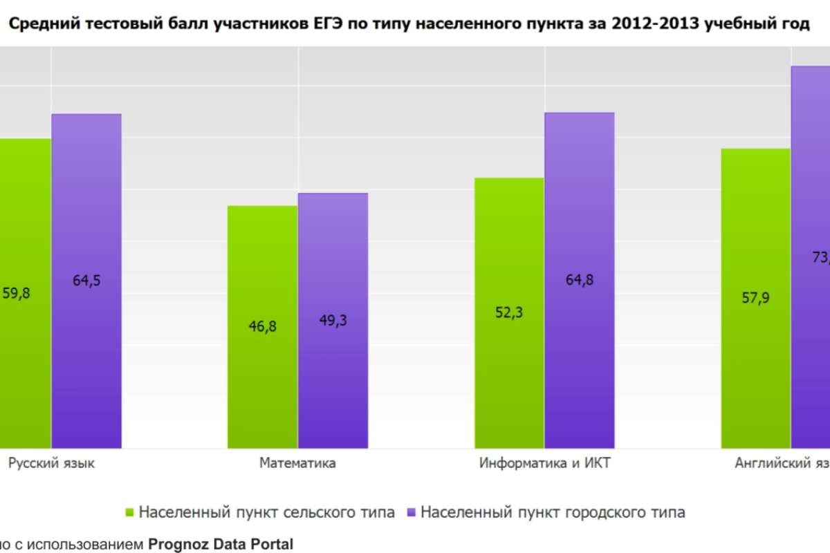 Приближается время подведения итогов ЕГЭ за 2013-2014 учебный год. В преддверии этого события компания «Прогноз» подготовила статистику по результатам ЕГЭ в России за предыдущие периоды.Интересны результаты ЕГЭ в разрезе сельских и городских школ, где видно, что разрыв по предметам «математика» и «русский язык» является минимальным (максимальное число баллов ЕГЭ – 100). При этом в целом наблюдается положительная динамика результатов ЕГЭ у учеников сельских территорий.