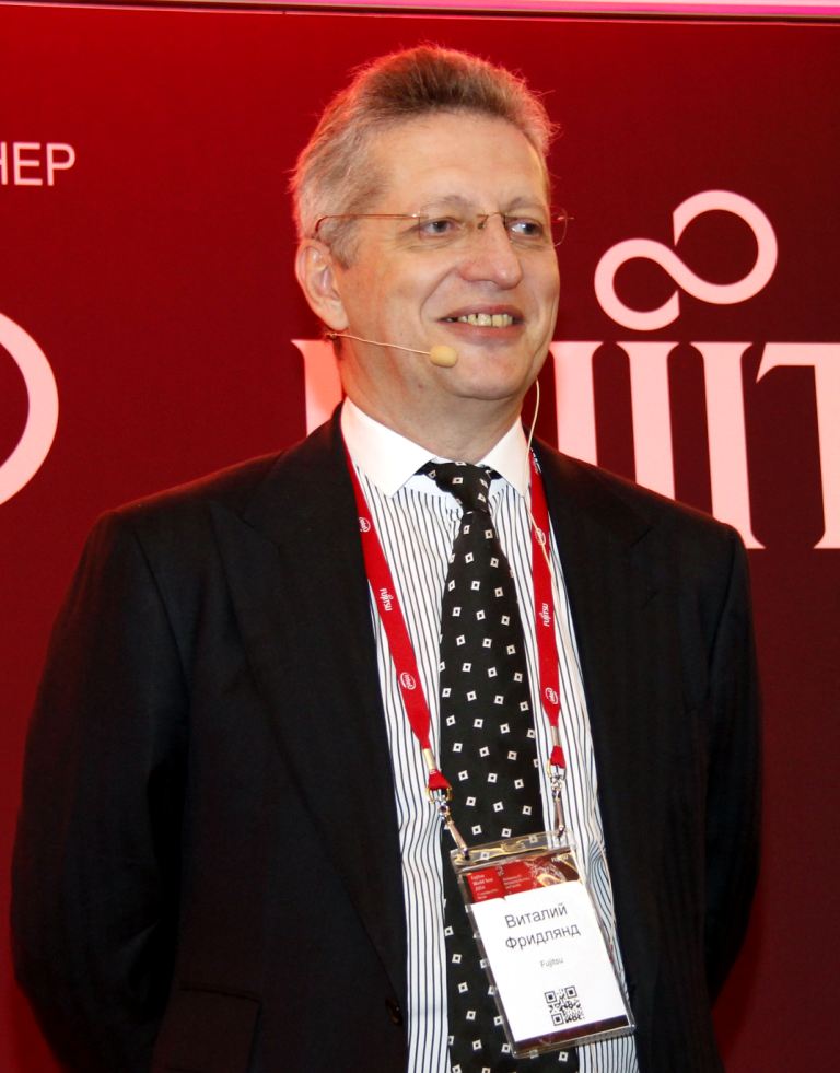 Обращаясь к участникам конференции, Виталий Фридлянд, вице-президент и генеральный директор Fujitsu в России и СНГ, сказал: «Сейчас мы становимся свидетелями зарождения нового мира, в котором люди, информация, вещи и инфраструктура объединены в единое глобальное целое, в котором ИТ играют все более заметную роль. При этом для ИТ существует четыре вызова, которые должны одновременно разрешаться — это Большие Данные, безопасность, мобильность и всепроникающие сервисы от ИТ. Так, Интернет вещей и порождаемые им Большие Данные несут в себе большой потенциал роста для мировой экономики. Мобильность обеспечивает связь каждого с каждым всегда и везде, причем незаметно. Безопасность информации, обеспечиваемая с помощью средств ИТ, дает возможность приватного доступа к данным, позволяет реализовать защиту от злого умысла и „от дурака“, хотя не в силах противостоять человеческому фактору, примером чего стали разоблачения Ассанжа и Сноудена. И в изменяющемся мире возможности ИТ позволяют внедрять и распространять новые сервисы для бизнеса, государства, индивидуумов, охватывая все новые слои гражданского общества и затрагивая новые сферы общественных отношений. Но эти сервисы тогда воспринимаются обществом, бизнесом, индивидуумами и даже государством, когда они ненавязчивы, качественны и соответствуют ожиданиям и цене. И при этом ИТ должны становиться все более незаметными, формируя новый мир, в котором на первое место выходят отношения между людьми».