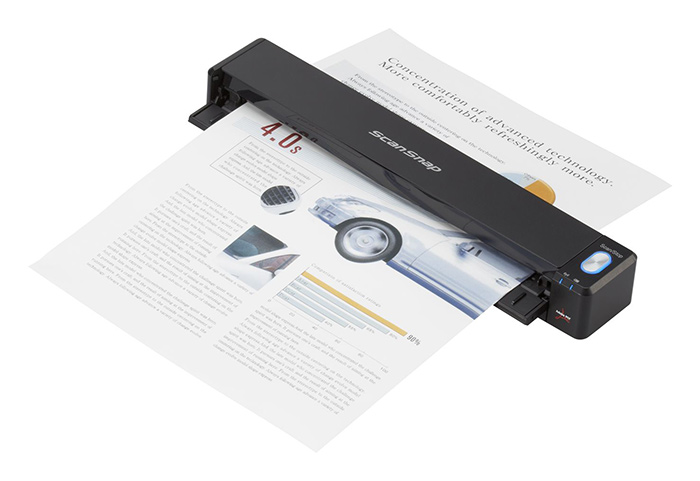 iX100 весит всего 400 гр вместе со встроенной аккумуляторной батареей, обрабатывает страницу за 5,2 секунды, получая цветной скан с разрешением до 300 dpi, который может отправлять по wi-fi-каналу на компьютеры под управлением Windows, планшеты и смартфоны, работающие под iOS или Android, а также, как сейчас модно, напрямую на облачные сервисы (разумеется, при наличии интернет-доступа через Wi-Fi). По заявлению производителя, одного заряда батареи достаточно для обработки и отправки 260 страниц формата А4. Интересно, что сканер позволяет обрабатывать листовые документы форматом А3, только их нужно сворачивать пополам и последовательно пропускать через сканер, а программное обеспечение позволит «склеить» полученные отдельные сканы в единый файл. Рекомендованная цена ScanSnap iX100 составляет триста долларов.
