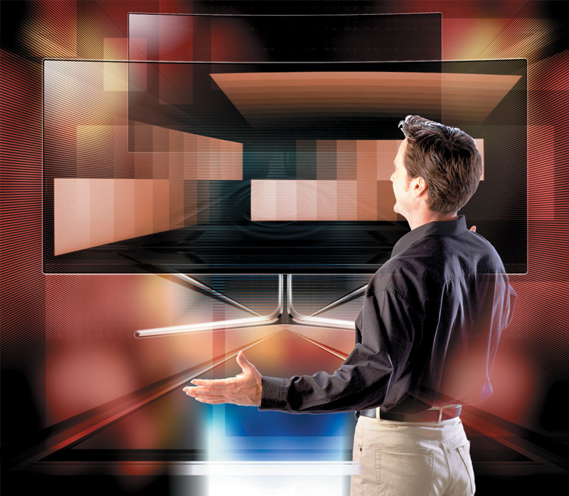 Работая, человек располагается перед монитором, в отличие от телевизора, достаточно близко, а потому дисплей разумнее изогнуть, чтобы точки на нем, по возможности, находились на одинаковом расстоянии от глаз. Многие вендоры так и сделали, применив техническую хитрость, апробированную в кинозалах начала XX в. Изогнутые мониторы на CES-2015 показали HP, LG, ViewSonic, Philips, Dell и другие.